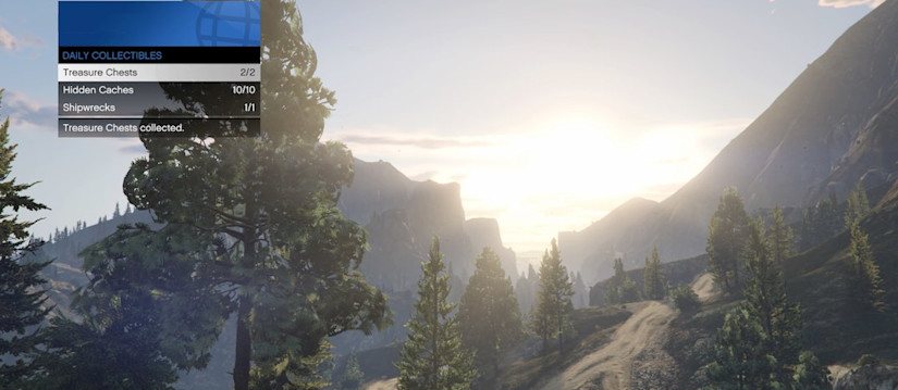 In GTA V Online there are currently three categories of Daily Collectibles: Treasure Chests, Hidden Caches, and Shipwrecks. You can find your progress on these by opening the Interaction Menu, selecting Inventory, then Daily Collectibles.